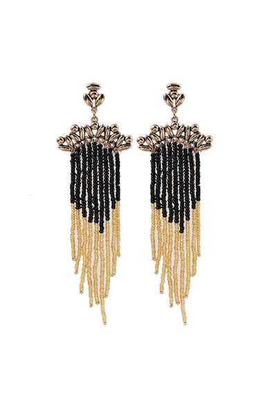 Златни, дълги обеци с ресни и мъниста, Reidun C2,