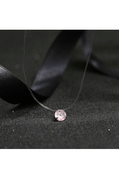 Колие с прозрачна корда, с розов камък от цирконий, Hakon C4,