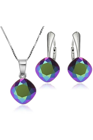 Комплект от сребро 925 с родиево покритие с кристали Swarovski® Princess Square 10 мм Scarabeus Green Leverback + Верижка