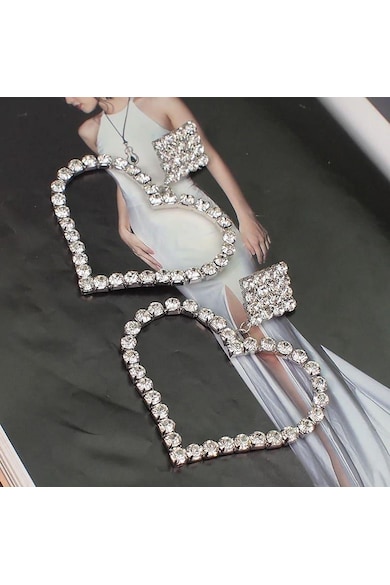 Обеци сърце, с камъни, сребристи, Lova C2,