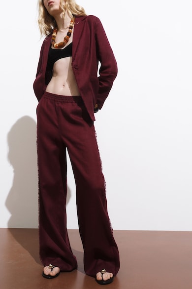 Разкроен ленен панталон с еластична талия